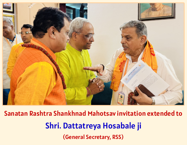 In our scriptures, 'Shankhnad' (blowing of the conch) symbolizes valor and auspicious beginnings. Hence, blowing the conch of Sanatan Rashtra Shankhnad Mahotsav signifies that the mission behind it will be an essential stepping stone towards societal unity and harmony. It will be like a trumpet call that will resonate in schools, it heralds unity amongst Hindu sects, cultural revival, and the protection of Sanatan Dharma for future generations.